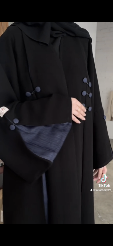 قماش كريب مزينه بالازرار الكحلي مع موديل الكسرات بالاكمام والامام